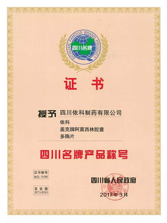 公司高度重视品牌战略,依法注册了“盖克”、“蜀中”、“三星堆”、“阿莫锋”、“益善源”、“蓉通”、“pg模拟器试玩在线”等108件注册商标,1999年“盖克”、2003年“蜀中”、2007年“三星堆”被认定为德阳市知名商标,2001年“盖克”、2004年“蜀中”被认定为四川省著名商标, 2008年“盖克”商标被国家工商行政管理总局认定为“中国驰名商标”。2017年3月,公司盖克牌、pg模拟器试玩在线牌阿莫西林胶囊和多酶片被四川省人民政府授予四川名牌产品称号。2016年,公司实现营业收入66373万元,利税7600万元;2017年,公司实现营业收入75045万元,利税7572万元。公司2017年被命名为德阳市第七批院士专家工作站,2016-2018连续三年被德阳市人民政府确定为重点龙头企业。